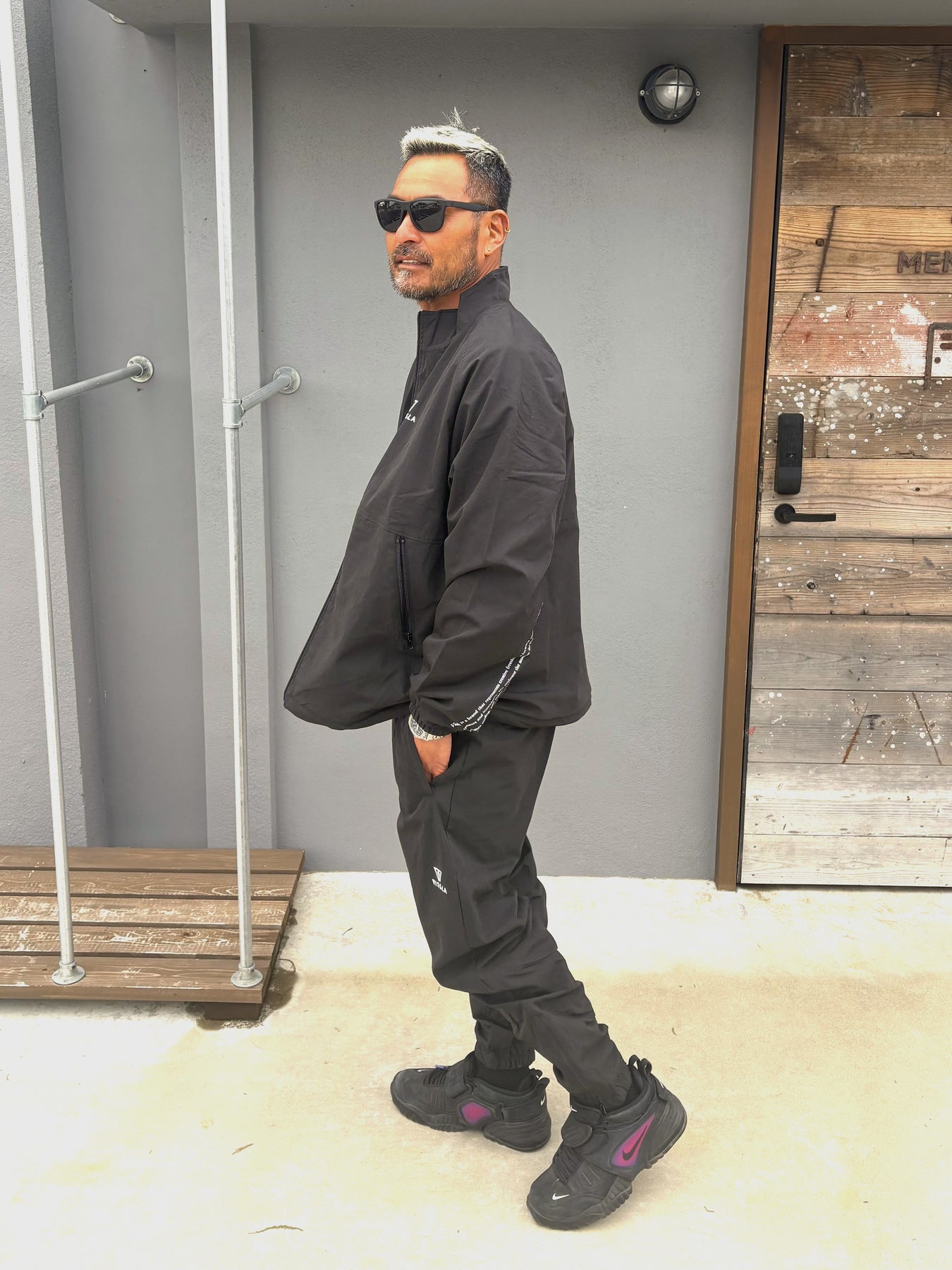 シンプルなデザインに、左袖へブランドマントラを落とし込んだトラックジャケット。身幅はやや広め、着丈は短めに設定したトレンドシルエットでアップデート。