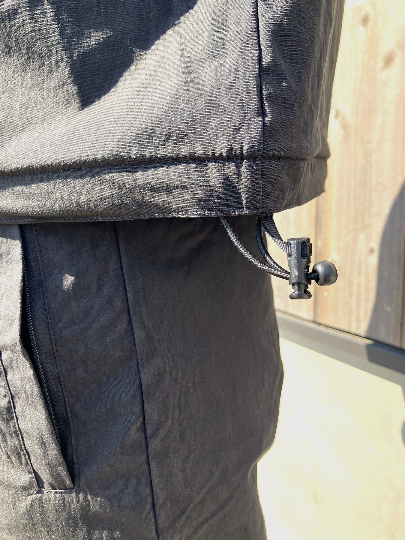 裾には調節可能なドローコードを配置し、シルエットやフィット感のアレンジが可能。両サイドのジップ付きポケットは、アクティブシーンでも安心。